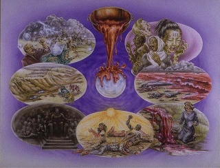 (...) 3. Die Nachlese: Die große Kelter des Zornes Gottes 14, 17-2017 Und ein anderer Engel kam aus dem Tempel im Himmel, der hatte ebenfalls eine scharfe Sichel bei sich. 18 Und ein weiterer Engel kam vom Altar her, der hatte Macht über das Feuer, und er rief mit lauter Stimme dem, der die scharfe Sichel hatte, die Worte zu: Sende deine scharfe Sichel aus und schneide die Trauben des Weinstocks der Erde ab, denn seine Beeren sind reif geworden. 19 Und der Engel warf seine Sichel über die Erde und erntete den Weinstock der Erde ab, und er warf die Trauben in die große Kelter des Zornes Gottes. 20 Und die Kelter wurde draußen vor der Stadt getreten, und das Blut floß aus der Kelter heraus bis an die Zügel der Pferde, tausendsechshundert Stadien weit. Nach dem Abschluß der Getreideernte, wenn die Ärmeren im Volk und die ausländischen Bürger auf den fast schon vollständig abgeernteten Feldern die Nachlese halten durften, erfolgte im ganzen Land die Weinlese. Diese und nicht etwa die logisch zu erwartende Nachlese auf den Getreidefeldern wird in den Versen 17-20 geschildert. Die der Weinlese folgende Kelter, die mit der Gerichtsfolge der sieben Zornschalen identisch ist, zeichnet ein sehr drastisches Bild des letzten und schwersten Abschnittes der großen Drangsal: Die reif gewordenen Trauben werden durch Pferdehufe zertreten. Dabei steigt in unrealistischer Überzeichnung eines gewöhnlichen Keltervorgangs der aus den Trauben gepresste Saft wie ein Meer von Blut bis an die Zäume der Pferde und überschwemmt ein weites Gebiet. Doch ohne die Phase dieses letzten und härtesten Gerichtes Gottes, durch das noch in den allerletzten Tagen vor der Wiederkunft Christi etliche Anhänger des Antichristen aufgerüttelt und seiner Verführungs- und Verderbensmacht entrissen werden, bliebe die große Erntearbeit auf dem "Feld der Endzeit" unvollständig. 14, 17-19: Zunächst tritt ein anderer Engel mit einer scharfen Sichel aus dem himmlischen Tempel heraus, um jedoch erst nach dem Befehl eines weiteren Engels sein Werk zu beginnen. Dieser später auftretende Engel hat Macht über das Feuer, das hier nicht im buchstäblichen, sondern übertragenen Sinne zu verstehen ist: Der Engel vermag das Feuer der großen Drangsal anzufachen, die jetzt ihren Höhepunkt erreicht. Sie wird durch die scharfe Sichel versinnbildlicht, mit der der Engel die Trauben schneidet. Mit den reifen Trauben sind die bisherigen Anhänger des Antichristen gemeint, die sich überraschenderweise weigern, dem selbsternannten Gottkaiser zu huldigen. Sie werden unter die Füße reiterloser Pferde geworfen, d.h. der zügellosen, nun ganz entfesselten menschlichen Natur der Schergen des letzten Großtyrannen schutzlos preisgegeben. Die große Kelter des Zornes Gottes ist somit nichts anderes als die rücksichtslose Vorgehensweise des Antichristen, der in der zweiten Hälfte seiner siebenjährigen Herrschaftszeit alle erbarmungslos verfolgen wird, die ihm die Anbetung verweigern. So wird er in Gottes Hand das Werkzeug sein, mit dem er das Gericht an "seinem Haus" zum Abschluß bringt. 14, 20: Ausdrücklich wird vermerkt, das die Kelter außerhalb der Stadt getreten wird. Nach der Messung des Tempels und der Zertretung des Vorhofes beides geschieht in den Tagen der sechsten Posaune wird es auf Erden keine heilige Stadt, d.h. keine schützenden kirchlichen Ordnungen mehr geben. Nur noch einzelne christliche Individuen werden ohne den Schutz der bisher gewohnten Strukturen gleichsam auf "freiem Feld" blutiger Verfolgung ausgesetzt sein. Todesmutige Bekenner werden es sein, die dem zuletzt unverhüllt hervortretenden Größenwahn des Antichristen tapfer die Stirn bieten. Das Blut dieser verfolgten Gläubigen wird bis an die Zügel der